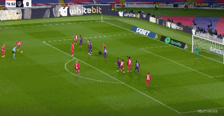 比赛第20分钟,特劳雷回归首秀贡献精彩助攻,加维头球破门反超比分!巴萨2-1马竞!