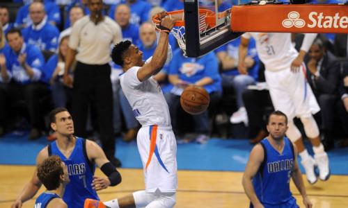 进入第四节生死战,鲍威尔空切篮下暴扣得手,科里森两罚一中,安德森、鲍威尔两罚全中,5分分差。杜兰特中投命中,安德森、杜兰特对飙三分,鲍威尔空接暴扣,雷霆99-94领先。暂停回来,巴里亚突破抛投得手,威少急停跳投回敬,诺维茨基探步上篮得手,威少连得6分,费尔顿急停跳投命中,诺维茨基三分飙中,罗伯森补篮得手,杜兰特连得4分,雷霆领先10分。威少反击突破上篮得手,终场前1分16秒,雷霆领先12分,小牛无力回天。最终,雷霆主场118比104战胜小牛,系列赛大比分4-1淘汰了老而弥坚的达拉斯小牛队晋级西部半决赛,将对阵圣安东尼奥马刺队。