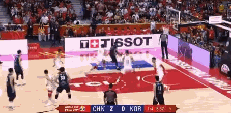 第三节刚开始,周琦率先开火,在内线连续得到4分。但随后,韩国队用三分还以颜色,并利用反击将比分咬住。