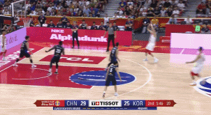 比赛过半,中国男篮依靠防守和之后的进攻转换将领先优势维持在4分左右。三节战罢,中国队以54:52领先。