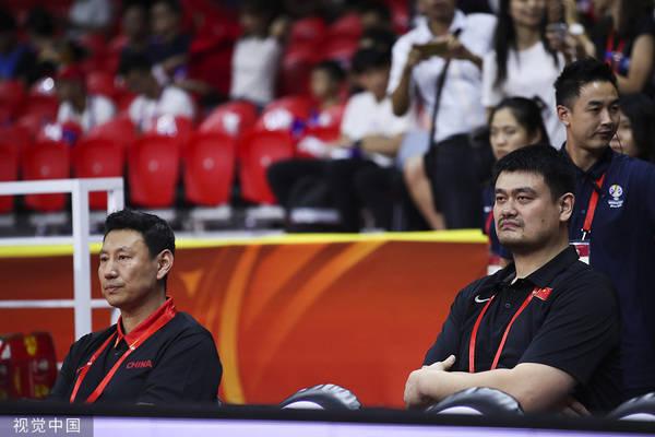 今天中国篮协主席姚明坐在替补席上亲自督战 @视觉中国