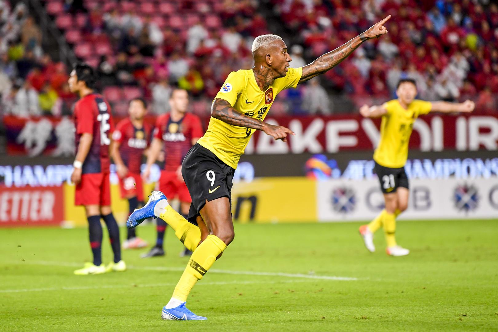 2019亚冠1/4决赛次回合,鹿岛鹿角VS广州恒大淘宝。塔利斯卡庆祝进球