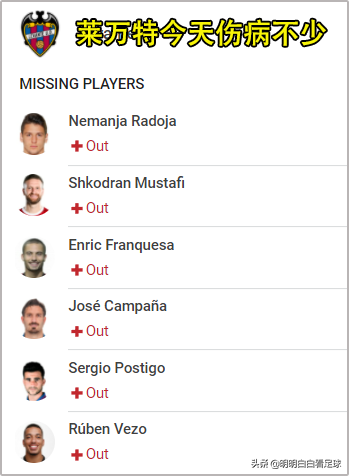 而莱万特就有点惨,首先伤病多,今天依然有坎帕尼亚、穆斯塔菲等多名主力受伤。