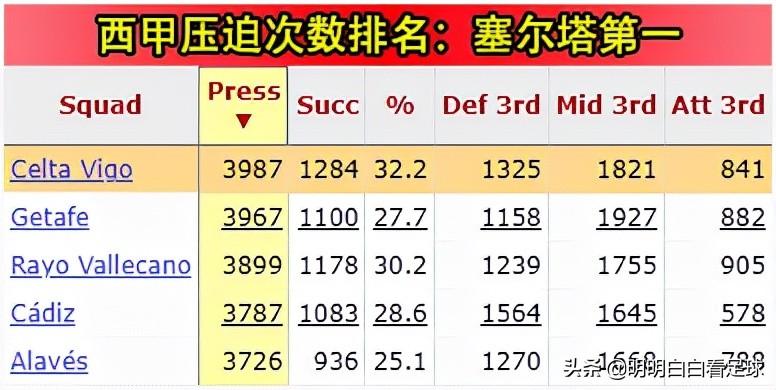 而塞尔塔,恰好是特别喜欢前场压迫的球队,总共3987次压迫、西甲最多,莱万特的后卫们能否抗住压力?