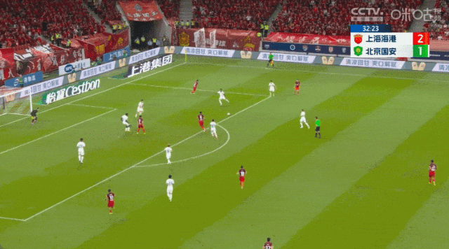 第33分钟,巴尔加斯长传转移,奥斯卡巧妙传入禁区,古斯塔沃领球后直接强势突破,小角度劲射得分,3分钟内攻入两球,海港队上半场3比1领先结束。