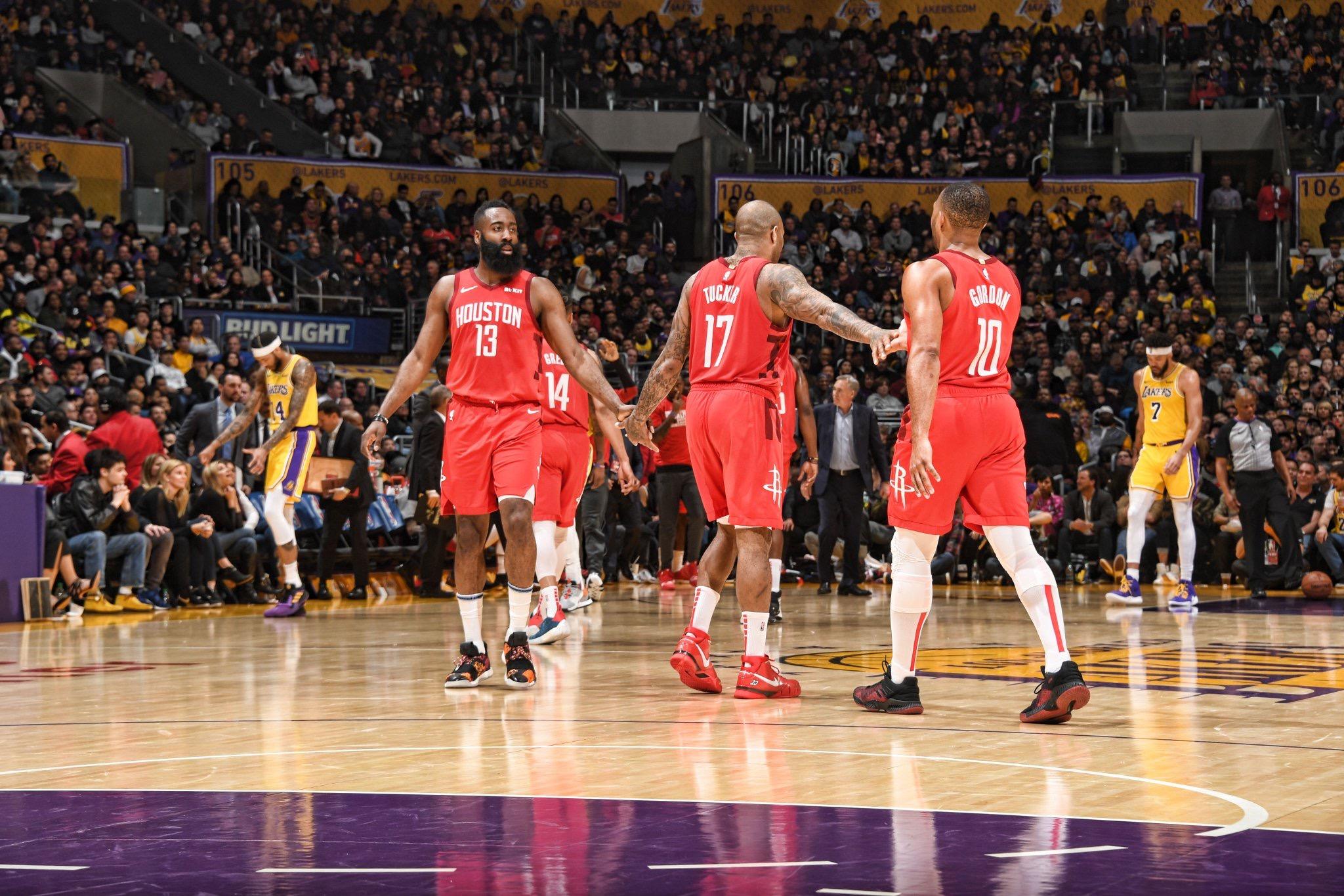 不过饭要一口一口吃,仗要一场一场打。在今天刚结束的比赛中,湖人就以111-106逆转火箭。此役詹姆斯得到29分11篮板6助攻的全能数据,英格拉姆和库兹马也分别得到27分和18分;火箭则再次重演末节崩盘,即使灯泡组合联手得到53分依然无力回天。