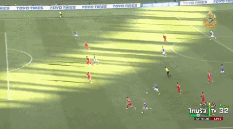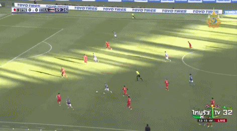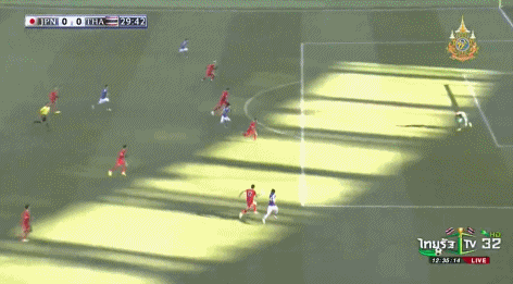 第37分钟,泰国队尝试一脚射门,皮球被没收