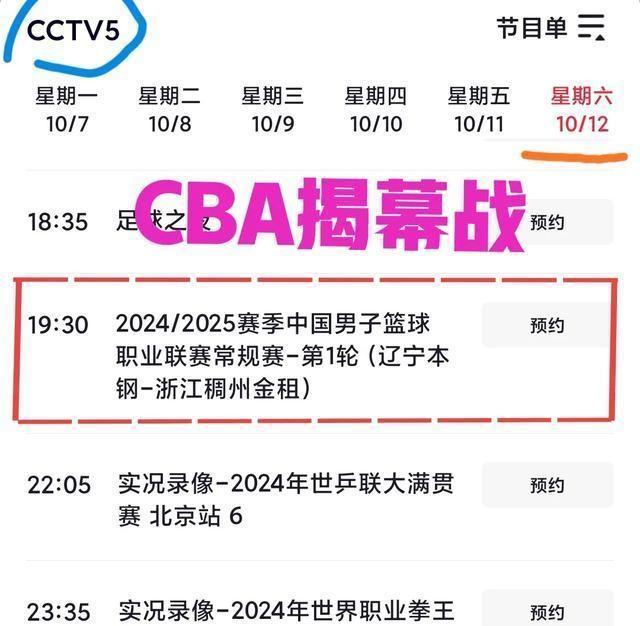 CCTV5直播CBA常规赛揭幕战,辽宁坐镇主场战浙江稠州,附颁奖仪式