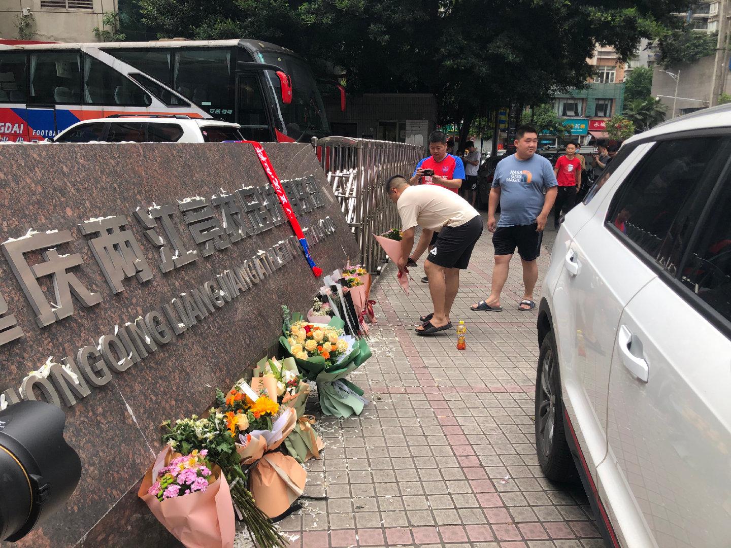 在得知俱乐部停止运营、退出中超的消息后,重庆球迷源源不断来到俱乐部所在地,和自己的主队和自己的青春做最后的告别,俱乐部门前摆满了鲜花和围巾,悲伤在这一刻是山城的心情。