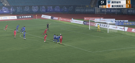 第90分钟,塔贝克禁区内倒地,裁判判点,莱斯卡诺点射,重庆2-1南京