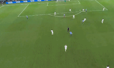 第19分钟,乌拉圭队在后场一脚长传发动进攻,巴尔韦德前插到禁区,右脚停球后左脚抢射,皮球稍稍高出横梁。