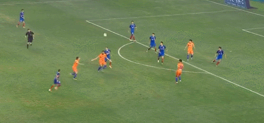 比赛第14分钟,刘军帅前场中路得球后挑传禁区,王上源抢到第一落点头球解围不远,莫伊塞斯禁区弧顶前沿凌空抽射,皮球弹地后飞入球门左侧。这粒天外飞仙般的世界波,兼具速度和准度,甚至没有给到对方守门员丝毫反应时间。