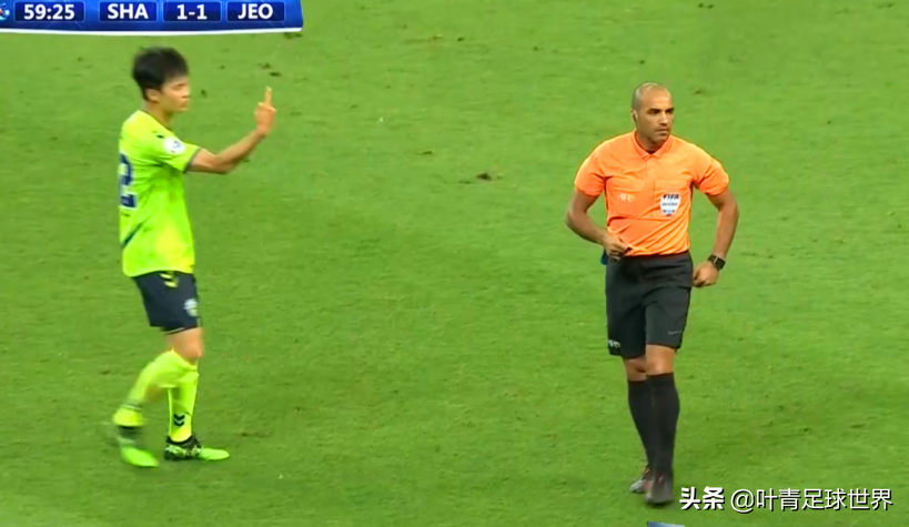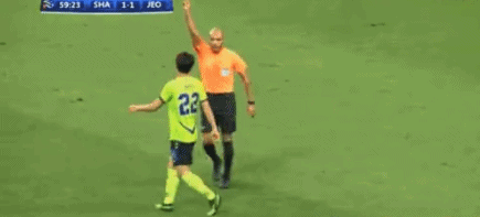 易边再战,第47分钟,胡尔克与洪正好争顶头球时犯规,主裁黄牌警告胡尔克。上海上港的攻势如潮,奥斯卡、埃尔克森、胡尔克接连冲击全北现代的防线。第60分钟,金珍洙防守中拉倒杨世元,主裁掏出黄牌警告金珍洙,勾着朝着主裁竖中指!由于主裁判并未看到,金珍洙这一侮辱性手势逃过红牌。