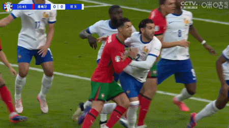 第17分钟,C罗争顶角球推倒特奥,被吹进攻犯规