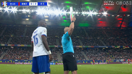 第80分钟,裁判判罚帕利尼亚对姆巴佩犯规,并出示黄牌