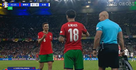 第90+2分钟,葡萄牙最后时刻换人,内维斯替换帕利尼亚