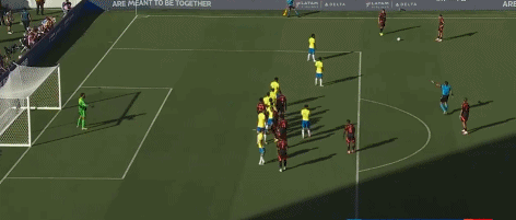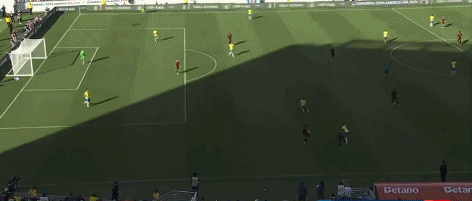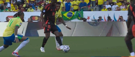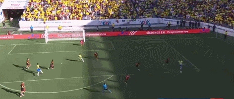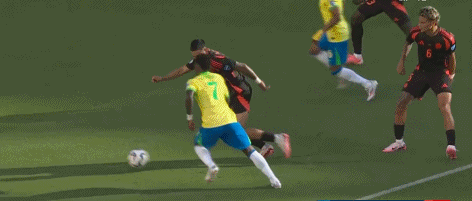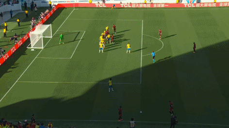 第45+2分钟,扳平比分,穆尼奥斯小角度得分,哥伦比亚1-1巴西