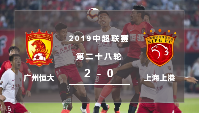 最终,恒大将2-0的比分保持到终场,实现了对上港的双杀,未来2轮拿到4分即可夺冠。