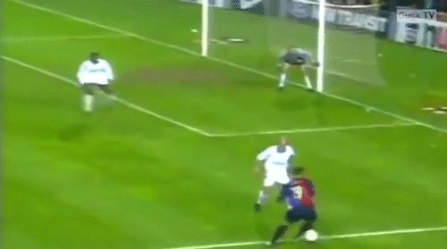 在上半场结束前,菲戈的进球,令巴萨2-0领先。