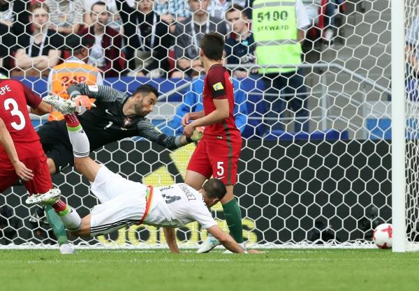 欧洲冠军葡萄牙队与北中美及加勒比地区金杯赛冠军墨西哥队联手为喀山体育场的34372名观众上演了一场高质量的比赛,葡萄牙队两次领先却难取一场胜利。C罗在上半场中段曾用一次大力射门击中门柱,此后纳尼的补射虽然入网,但阿根廷主裁判皮塔纳根据录像助理裁判观看回放的提醒后,果断判罚这球因纳尼越位而无效,这也是国际足联在这么高级别大赛的历史上裁判第一次使用录像回放做出的进球无效判罚。