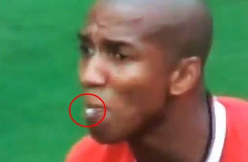 此时,一坨白色的不明物体突然从天而降,直接砸进了阿什利-扬的嘴里。英国媒体仔细分析了下慢镜头,认为这极有可能是鸟屎。