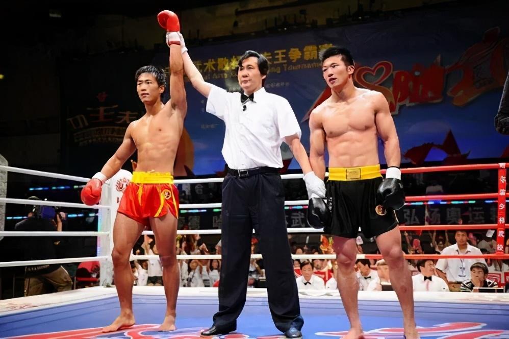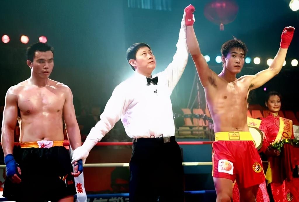 2005年全国武术散打俱乐部联赛,姜春鹏(右)战胜刘献伟