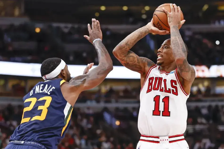 第四节爵士塞克斯顿拿下8分,公牛德罗赞拿下17分,最终爵士117-119不敌公牛