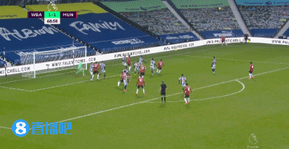 第44分钟,卢克肖左侧底线附近起球传中,B费在点球点附近凌空垫射将球打进,曼联1-1西布朗。↓