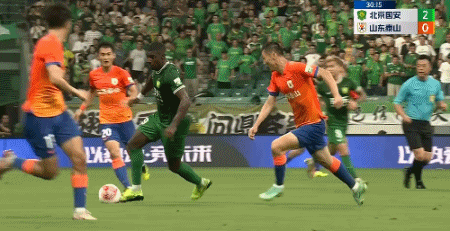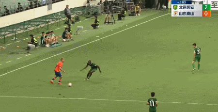 山东泰山vs北京国安开场第5分钟,国安外援法比奥获得打空门的机会,但法比奥将球踢偏,错失进球良机。