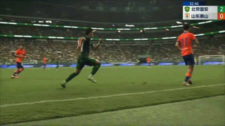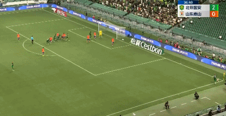 第5分钟,一分钟两球!法比奥接横传破门!国安2球领先山东!