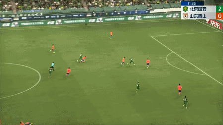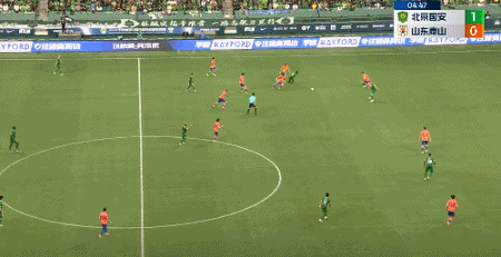 第4分钟,阿德本罗突入禁区推射远角打破僵局!国安1-0山东