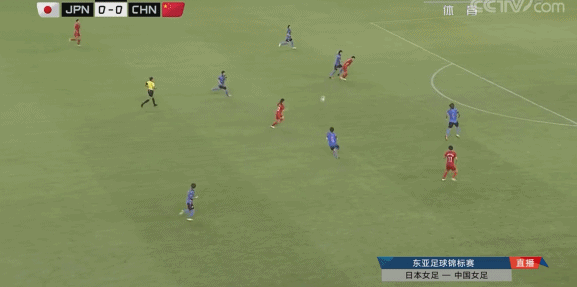 上半场比赛,中国女足相对处于劣势,日本女足占据了控球率的优势,中国队只能伺机寻找反击。