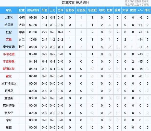 底特律活塞杰登-艾维19分2板4助1断1帽,坎宁安18分3板7助,杰伦-杜伦14分9板3助1断3帽。
