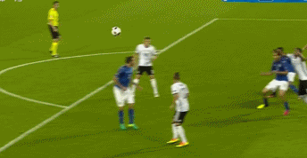 下半场一开场,意大利队门前风声鹤唳。穆勒在禁区里得球晃过基耶利尼,一脚劲射直奔球门远角,布冯扑救不及,赶回来的贾凯里尼一个蝎子摆尾的解围,将球踢出底线。