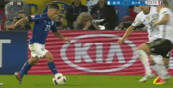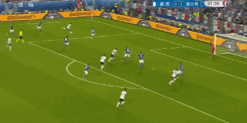 第37分钟,意大利队再放一脚长传找顶在前面的埃德尔,诺伊尔冲出禁区一脚解围。