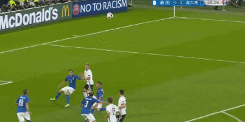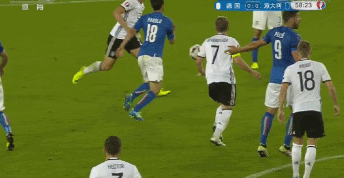 开场第5分钟,意大利队中场长传禁区,贾凯里尼拿球转身扫射,被博阿滕挡出底线。