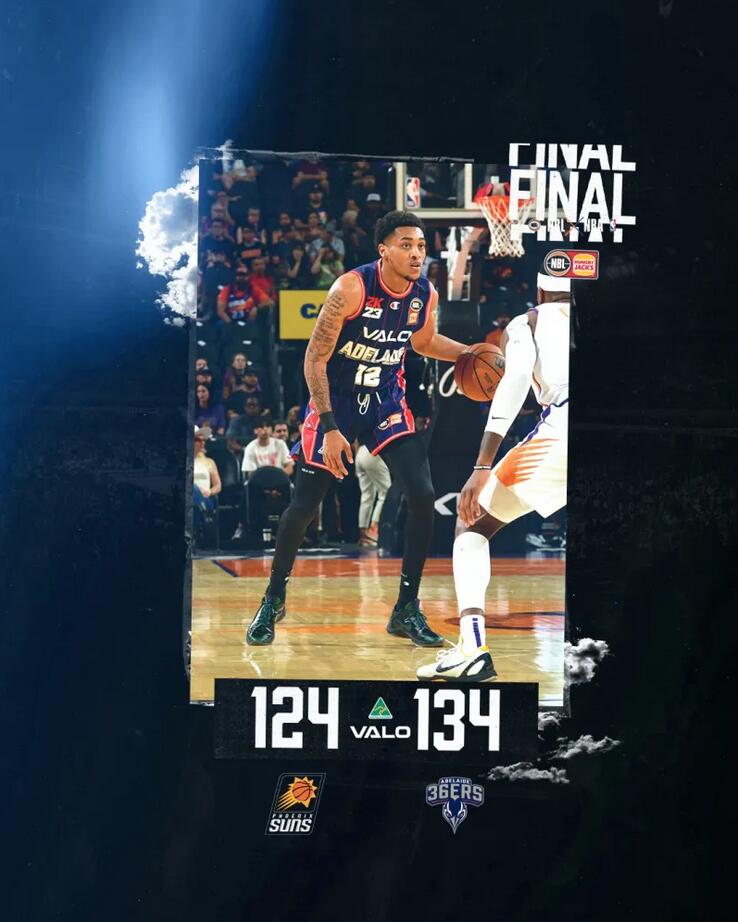 今日,澳超联赛NBL球队阿德莱德36人队在NBA季前赛中134-124击败菲尼克斯太阳队。
