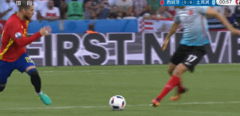 第52分钟,土耳其的机会,伊尔马兹在禁区里扣过皮克后左脚打门,可惜打高了。