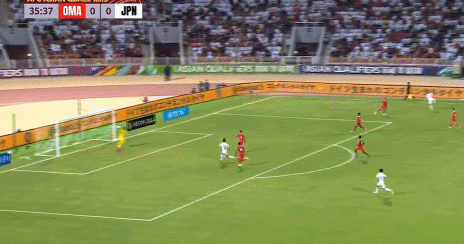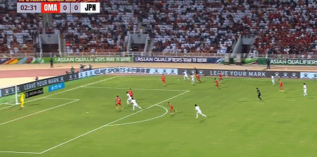 第36分钟,日本队前场抢断,右边路快速传中形成威胁,不过被阿曼队后卫破坏。