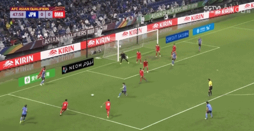 第47分钟,日本队获得前场任意球,小角度直接射门被阿曼门将扑出,随后田中碧跟进抽射打高。
