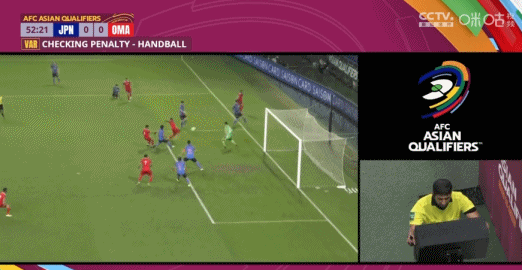 第51分钟,阿曼边路传中,长友佑都禁区内解围,主裁判判罚手球犯规,阿曼获得点球!在主裁判观看VAR后取消点球判罚。