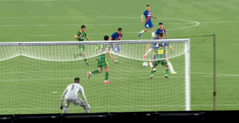 第59分钟,申花右路传中,金信煜的头球攻门被侯森托了一下砸在横梁上弹出,随后申花开出角球,莫雷诺抢到落点,顶出一记干净利落的头球攻门,侯森毫无办法,申花终于打破僵局,1-0。