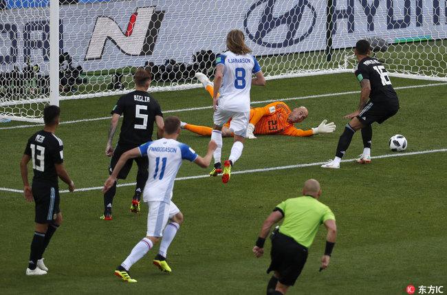 21分钟梅西突破后远射被哈尔多松将球没收。23分钟冰岛扳平比分,西古德森禁区右侧大力扫传被卡巴列罗一挡,芬博加松门前补射得手,1-1!同时这也是冰岛世界杯历史上的首粒进球!