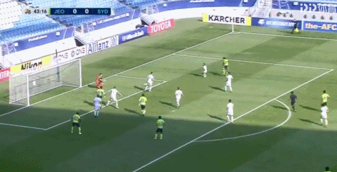 上半场比赛,两队大开大合,全北一共有8脚射门,2次命中目标,悉尼也有5脚射门,2次命中目标。比赛的第43分钟,古斯塔沃将球交给罗成恩,罗成恩小角度射门命中,全北带着1-0的比分进入下半场。