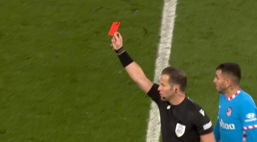 第52分钟,场上风云突变,格列兹曼拼抢时抬脚过高,左脚踢中菲尔米诺头部,主裁判直接向格列兹曼出示红牌,马竞被迫以10人应战。