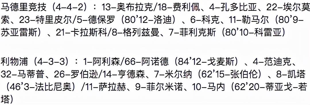 此后,双方都无法再次改写比分,最终利物浦2-0战胜马竞。