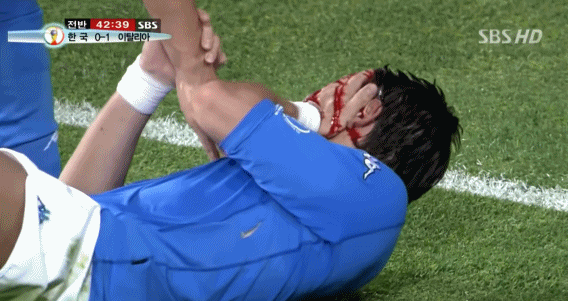 科科血流满面,赞布罗塔被爆铲,马尔蒂尼被爆头,托蒂被判假摔罚下,托马西反越位破门被误判无效...还有布冯扑出安贞焕点球,维耶里抢点头球破门,薛琦铉抓住帕努奇失误扳平,维耶里错失半空门,安贞焕第117分钟头球打进金球...