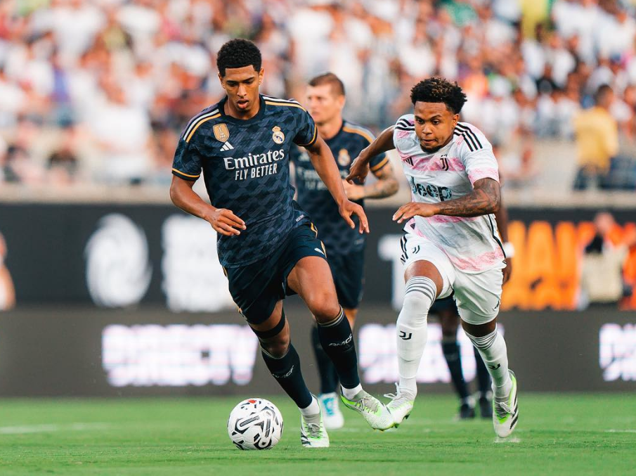 今夏的前3场热身,皇马2胜1负,接连战胜AC米兰、曼联之后,0-3输给百年死敌巴萨。皇马主帅安切洛蒂还在试验、磨合阵容打法,与尤文一役,皇马继续在442和433之间摇摆,贝林厄姆出任前场自由人,莫德里奇、克罗斯联手。