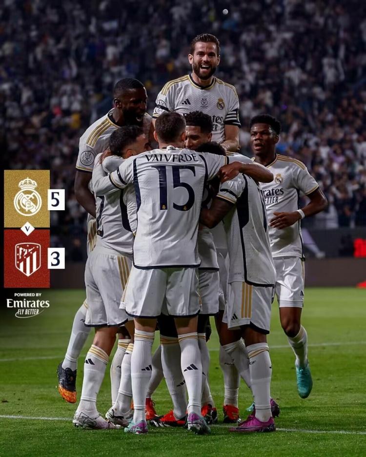 加时赛补时2分钟,最终全场比赛结束,皇马5-3马竞。