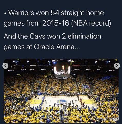 2015-2016赛季金州勇士队常规赛在主场赢了54场比赛,而克利夫兰骑士队在金州勇士队主场赢下了两场总决赛。(PS,西决雷霆也在勇士主场拿到了两场胜利)